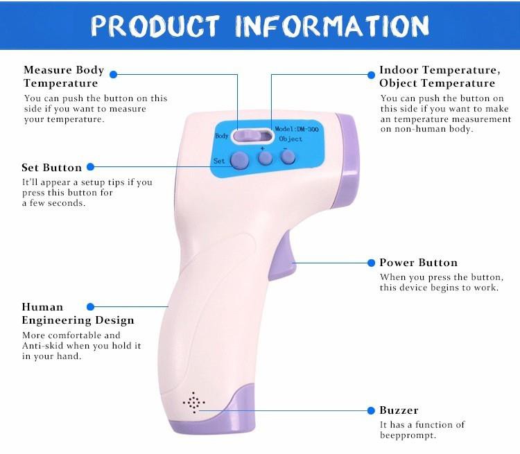 2. ڈبل موڈ درجہ حرارت کی پیمائش: یہ انسانی جسم کا درجہ حرارت / مواد کا درجہ حرارت / پانی کا درجہ حرارت / وسیع درجہ حرارت کی پیمائش کرسکتا ہے۔