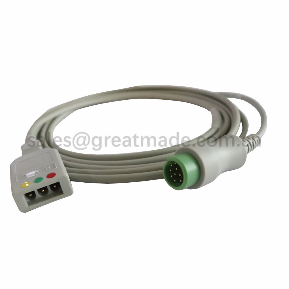 BENEVIEW T5 T6 T8 ، BIOCARE IM12 ، PM900S کے لئے ECG کیبل 3 لیڈ ٹرنک کیبل